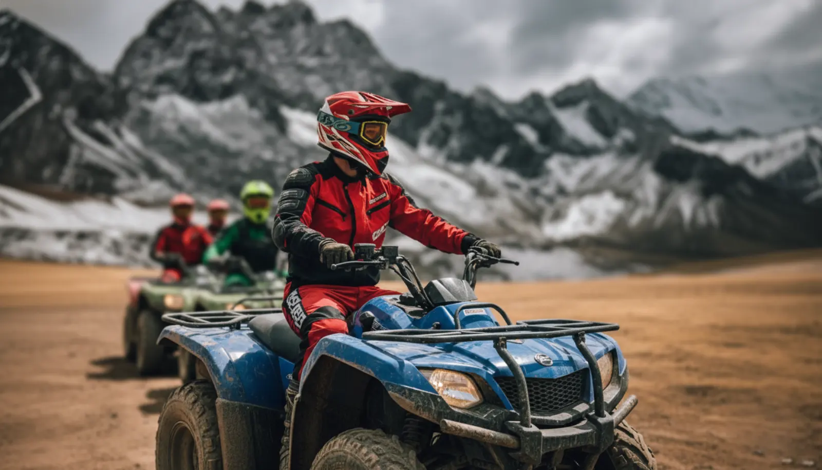 ¡Comienza la adrenalina! Conducimos nuestras cuatrimotos por una ruta increíble rodeada de montañas, valles y paisajes altoandinos que parecen de otro planeta.